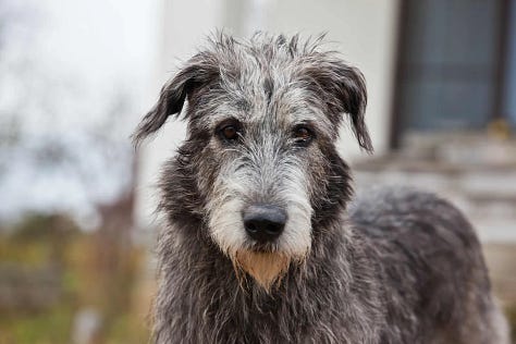 With a rather wide canvas open to me, I decided to mix a few different dog breeds into my Gytrash. The main one was the Irish Wolfhound. This is a rather old type of dog- the Romans reference them, and they feature rather prominently in Celtic mythology, so they are no stranger to supernatural associations.